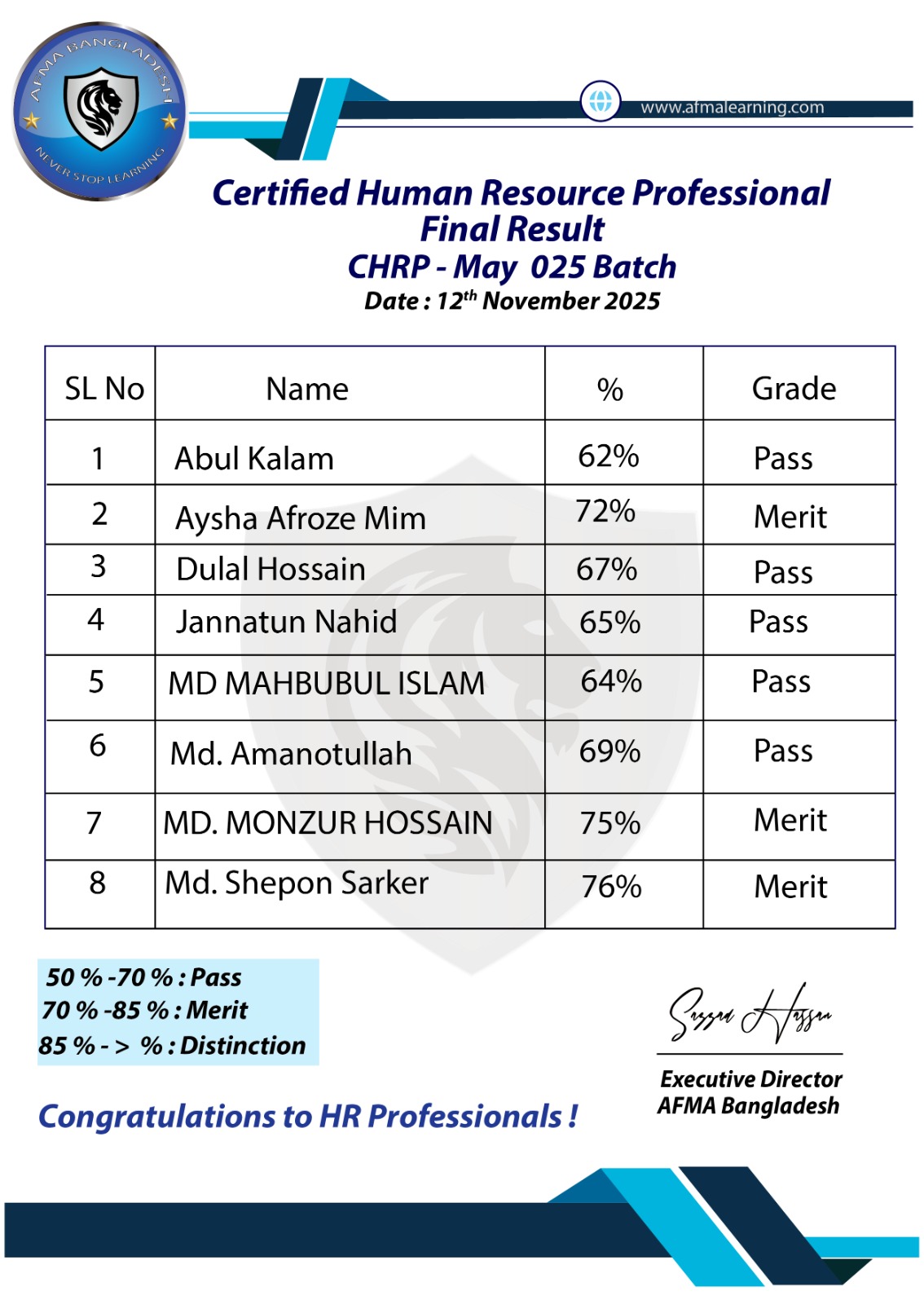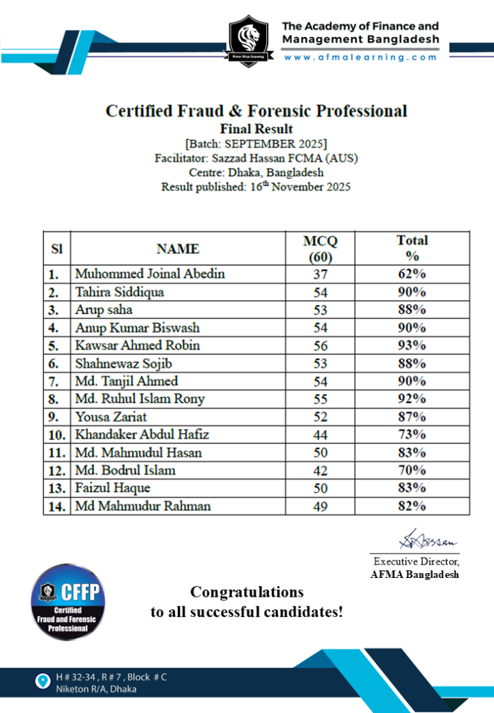 Certified Fraud & Forensic Professional Result