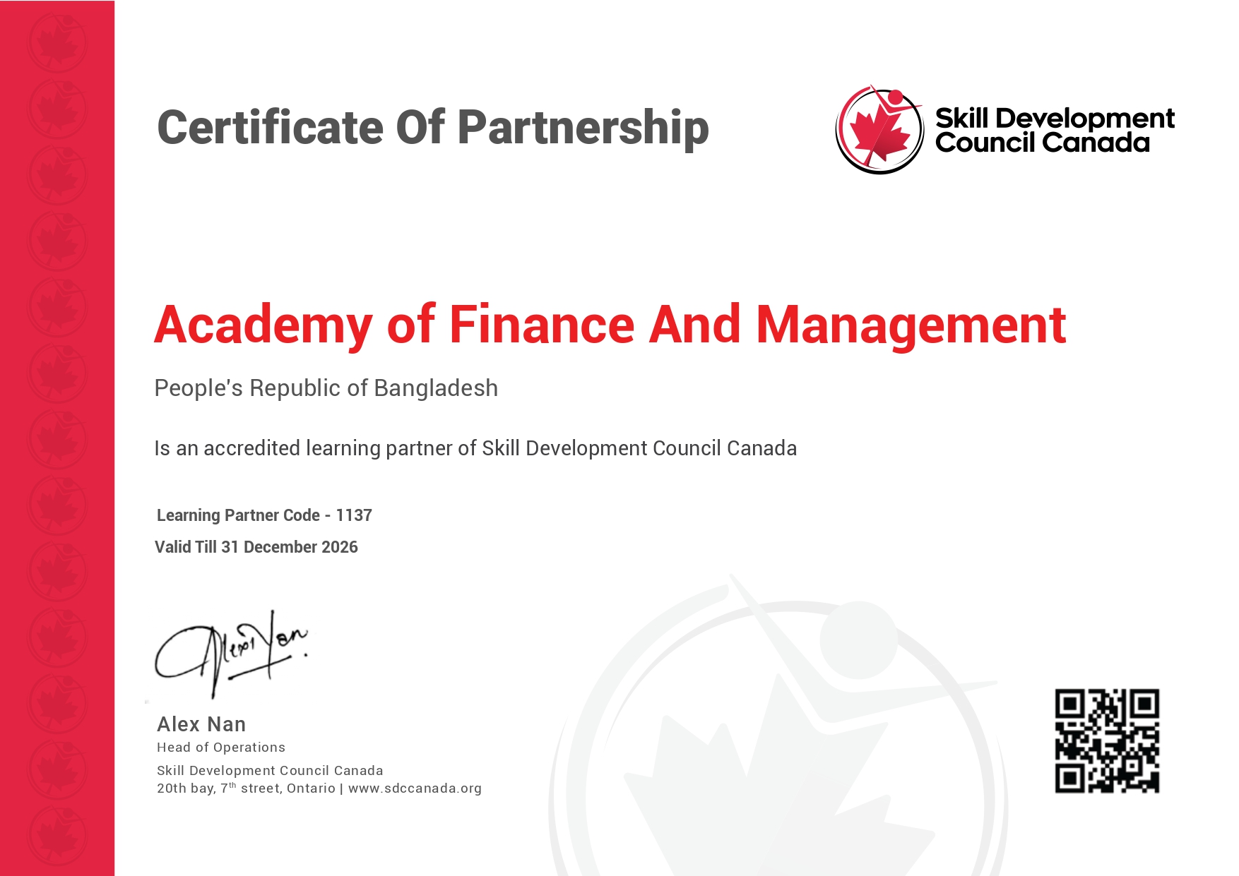 SDCC Accredited Learning Partner Skill Development Council, Canada https://sdccanada.org SDCC Verification https://certification.sdccanada.org/verification-lp